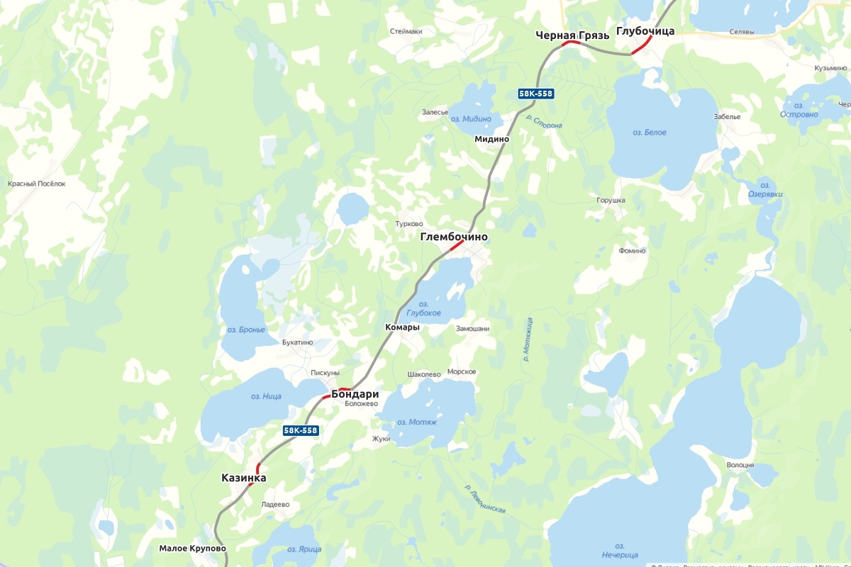 Сейчас в этих населённых пунктах (кроме Глембочино) дорога с песчано-гравийным покрытием. В ходе ремонта покрытие будет переведено в асфальтобетонное. В деревнях также отремонтируют тротуары, обустроят посадочные площадки на автобусных остановках, установят освещение, барьерное и пешеходное ограждение.