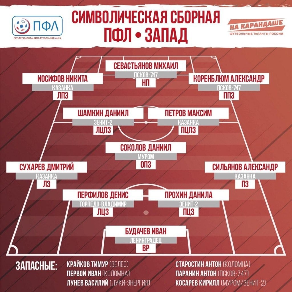 В целом в символическую сборную ПФЛ вошли 11 футболистов в возрасте 18-19 лет, а также шестеро запасных.
