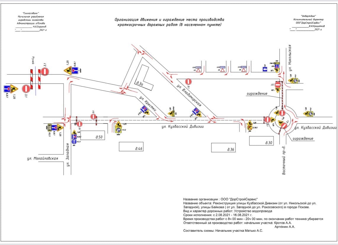 Со 2 по 16 августа на участке с круговым движением в районе ТРК «Акваполис» ведётся перекладка труб водопровода, а на втором участке в конце улицы проводятся работы по замене теплотрассы. На это время частично ограничено движение транспорта. Автомобилисты для объезда могут использовать улицу Западную, а на проезде между Никольской и Владимирской изменилось направление одностороннего движения.