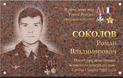 Роман Соколов погиб при исполнении воинского долга в составе 6-й роты 1 марта 2000 года. В доме, на фасаде которого предлагается установить памятную доску, он жил.