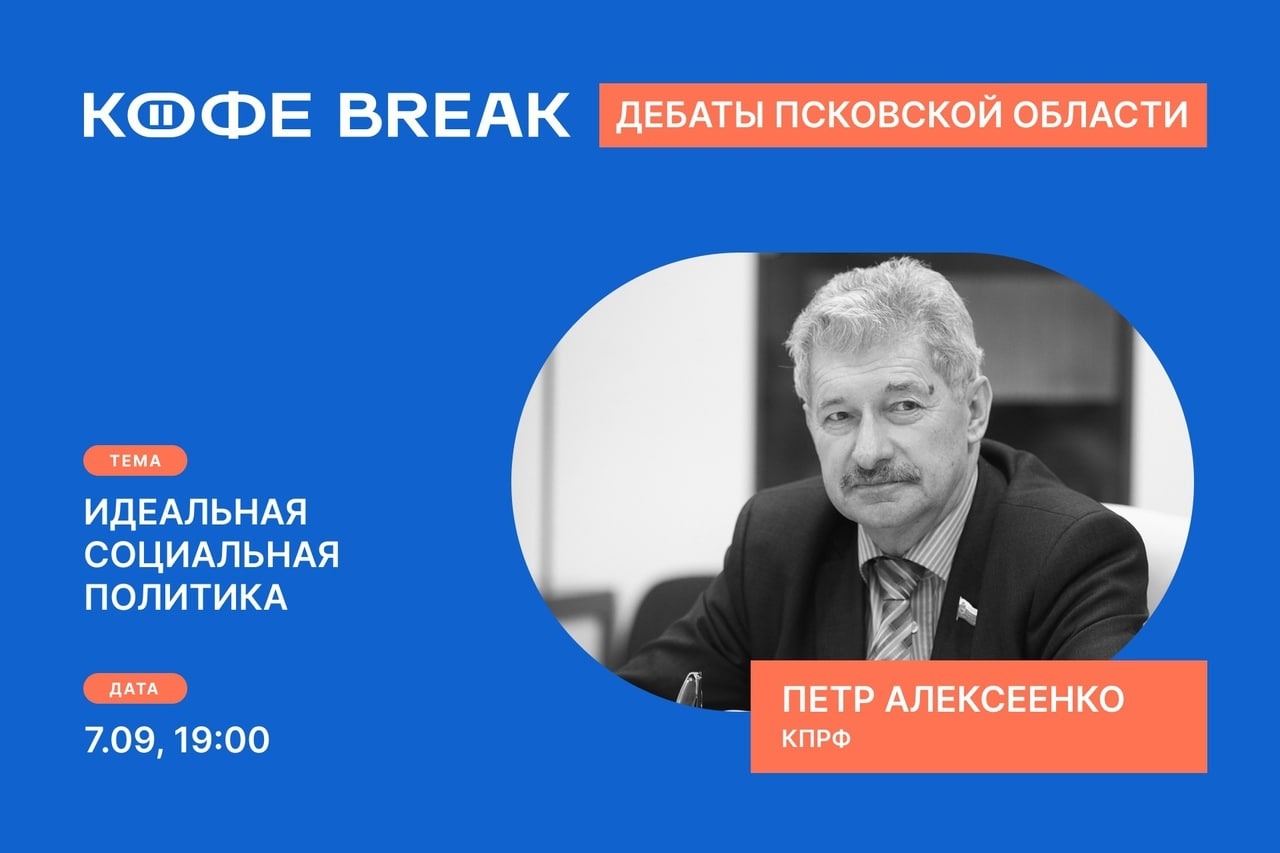 Первый секретарь Псковского областного отделения КПРФ Пётр Алексеенко станет гостем третьего выпуска программы Кофе Break в Псковской области: начало дебатов в 19:00. Трансляция будет вестись, в том числе, в группе «Псковской губернии» в соцсети «ВКонтакте».