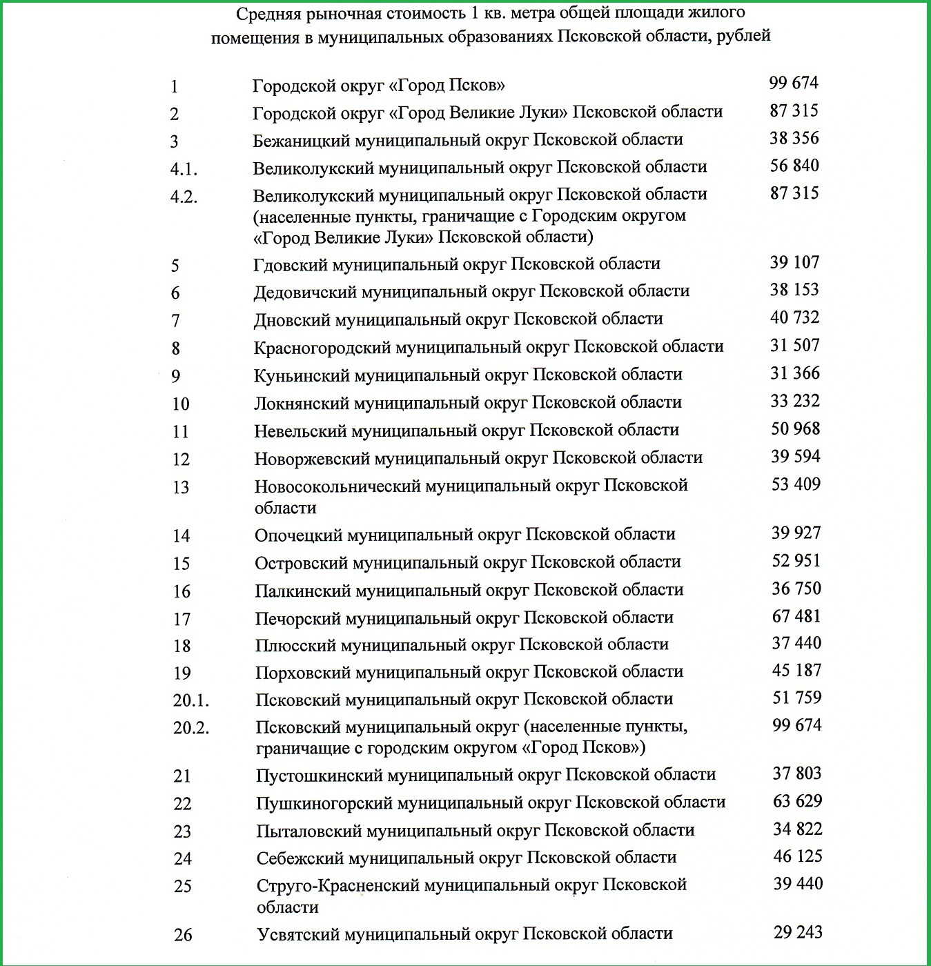 В Великих Луках и Великолукском округе стоимость кв. метра жилья снизилась почти на 1%, также снизились цены в Красногородском и Куньинском округах.
