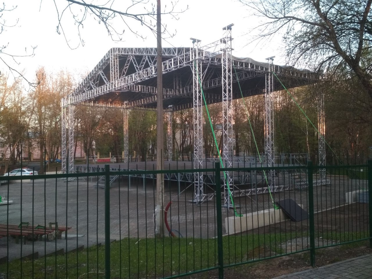 В выходные там же будет смонтирован экран 10 на 6 метров. Заменено покрытие под сценой, по периметру установлен новый забор, создана доступная среда для людей с ограниченными возможностями здоровья.